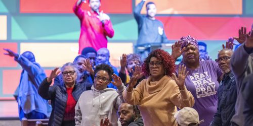 Ald. William Hall (6th) and Pastor John Boston led prayers for the community and families of victims of violence during the event at Shiloh Seventh-day Adventist Church, 7000 S. Michigan Ave.