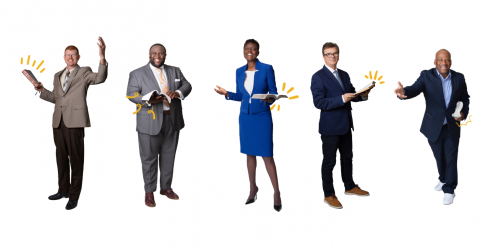 Five Parishioners Trade Pews for Pulpits. From Lto R: Jeff Veldman, Thorly James, Jennifer Daley, Ovi Radulescu, and Lamont Taylor.