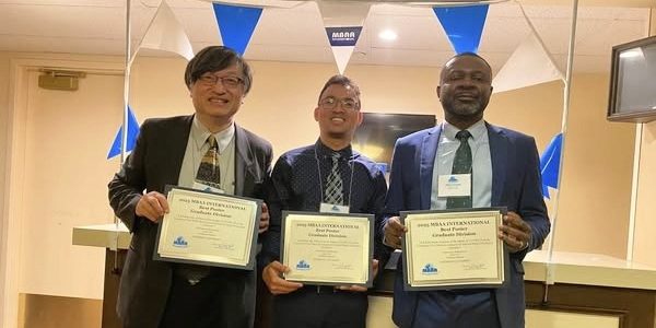 Jerry Chi, Herimamy Rafaliniony and Williams Peprah won the 2025 Best Research Paper and Poster Award at the MBAA International Conference. Photo credit: Courtesy of Jerry Chi
