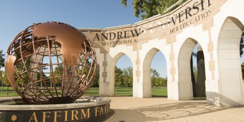 The globe at the Andrews University entrance. [PC: Darren Heslop]
