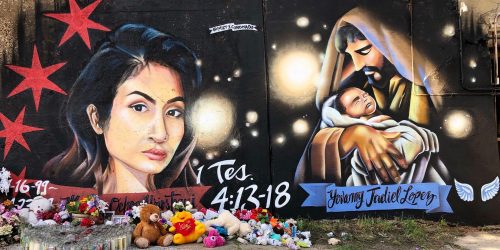 The mural painted by Milton Coronado in honor of slain 19-year old Marlen Ochoa-Lopez now includes her son, Yovanny Jadiel Lopez. On Saturday, June 22, Coronado returned to paint the image of the baby in the arms of Jesus.
