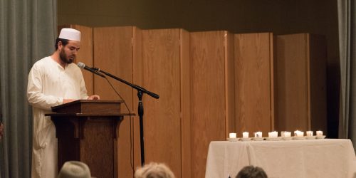 “We stand up together and register our determined opposition to prejudice and religious hatred,” said Terese Reeve, associate dean of the Adventist Theological Seminary at Andrews University and chair of a university committee engaged in deepening relationships with other local faith communities. “Your action here tonight, to express care and concern will take some of the momentum of hate which seems to be welling up around us.”