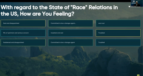 Later on, Valentine reviewed the results of an anonymous poll from the last meeting where the topic of race relations was on the agenda. Some of the findings were: