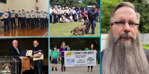 Top, left to right: Fancy Drill Exhibition by the Orion Pathfinder Club from Toronto, Ontario, Canada, & K-9 demonstration by Sergeant Chad Fickle and his dog Ace. Right: David Yaegley as Goodloe Harper Bell. Bottom, left to right: Mayor Mark Behnke presenting a proclamation from the City of Battle Creek to BCA board chair Dan Grentz and a Sunday morning family walk. Pictures courtesy of Brenda Baker.