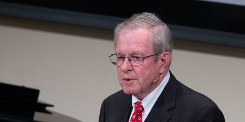 Charles Stoddard, a banker, philanthropist and founder of Grand Angels, spoke on the topic of service at the Celebration of Community Engagement | Photo credit: Julia Viniczay, University Communication student photographer