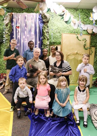 Chickens were brought into the Sabbath school classroom to help the children make the connection with their fundraising efforts to buy chickens in Kenya. Courtesy Khai Khai Cin