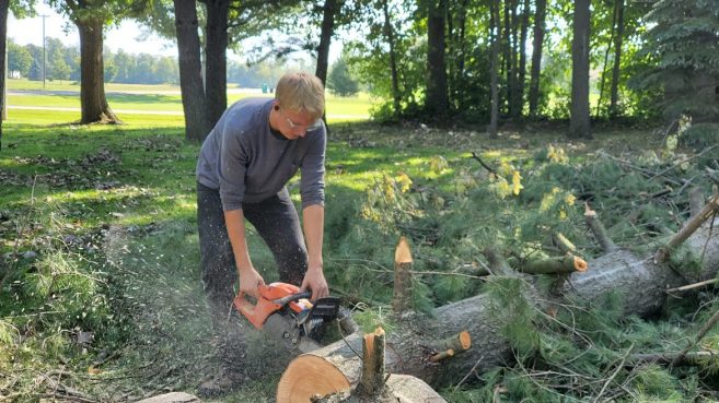 Michigan’s disaster response volunteers are trained to operate a chainsaw for disasters like these, and after just a few hours, a significant difference could be seen in Dorothy’s yard.