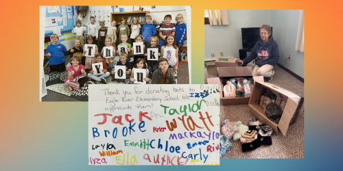In April I was visiting with Linda, a member of the Tomahawk Church in northern Wisconsin. During our discussion, I asked her what she was doing now that she was retired. She said with a big smile that she likes to knit hats for the school kids, so I asked to see some of her work. She walked into the living room and opened four boxes that were on the floor. In front of me was displayed a wide variety of winter hats for boys and girls. Each hat looks unique and fun, and is customized with a pin, a patch or a button. When Linda finishes knitting the hats, a couple of her church friends help by taking the hats to nearby elementary schools.