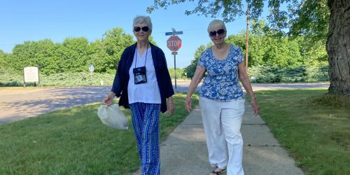 Janet Olson, 79, and Beverly Pottle, 85, have been walking these sidewalks together for three decades. Their habit started well before retirement, back when they were working for the University — Beverly as an administrative assistant for the dean of the School of Technology, Janet as an administrative assistant in Plant Administration.