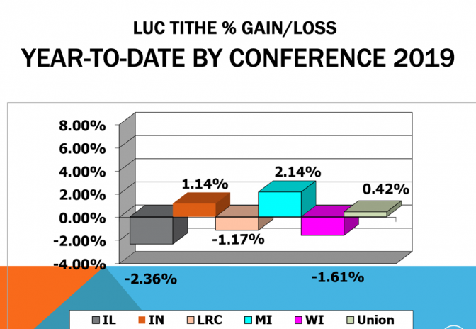 At the end of 2019, overall tithe gains in the Lake Union were in the positive territory, up 0.42%.