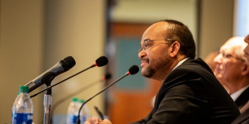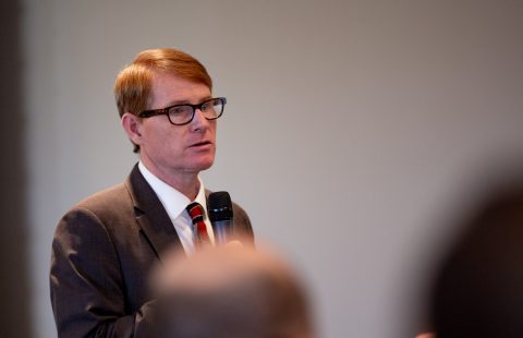 Nicholas Miller, Lake Union legal counsel, presenting the sexuality and gender document