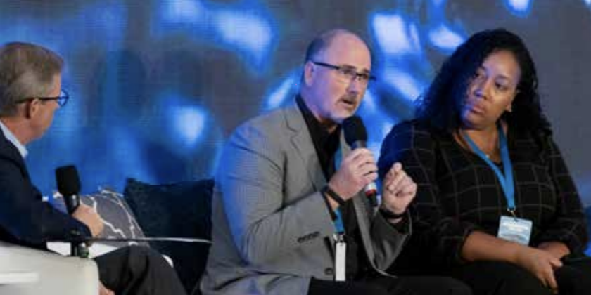 (Left to right) David Banks, chief strategy officer, Tim Cook, AdventHealth Altamonte CEO, and Jillyan McKinney, Littleton Adventist Hospital CEO, participate in the panel discussion, “Implications for AdventHealth.” | Photo courtesy AdventHealth