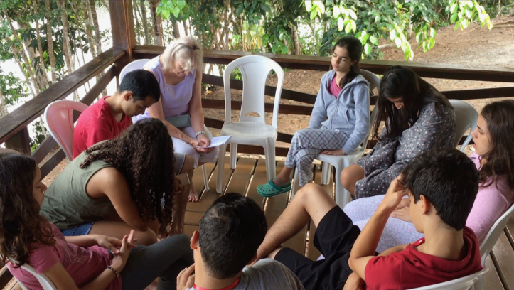 Our day started with the sweet sounds of Rob playing hymns on his trumpet. In one hour, we were gathered on the veranda for worship with our Portuguese-speaking, Venezuelan pastor, Vicente. We were a varied lot — husband-and-wife medical doctors, an energetic 80-year-old chiropractor, a happy group of teens, retirees who baked for the group or did odd jobs around the property, an architect and his young son who worked with kids, a counselor, a photographer, a female airline pilot who happily mixed concrete, the “voice” who translated Rob’s announcements and the pastor’s talks and anything else requiring a linguistic bridge for the group. My job was to gather small groups together for prayer three times a day.