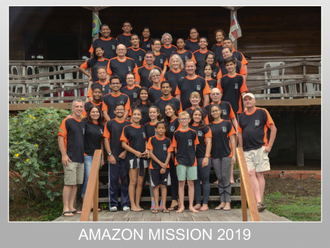After breakfast, some of us set off in a speedboat for island outposts where we ministered to small, impoverished communities — crafts for the kids, medical and psychological consultations, facials for the women, and adjustments by the chiropractor who had to shoo away a spunky monkey swinging up onto his table one day! In the afternoon, we mixed concrete for a storage area under the mission house, painted a tiny Adventist church, ministered to our own community, and put up electric posts where needed. After supper, we made our way to the community pavilion for evangelistic meetings. Boats sped to nearby islands to pick up those interested in attending and each night some 40 people listened to brief health talks and then the gospel message. This was a first in the community and five precious people were baptized in the river on our last Sabbath. A Brazilian couple who live close by will follow up with these new Adventists.