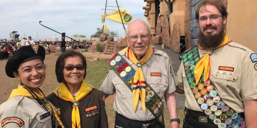 During the International Pathfinder Camporee, two members from the Lake Union Conference were recognized as the oldest Master Guides attending the event in Oshkosh, Wisc.