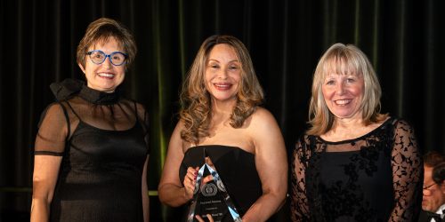 (From left to right) Dr. Barbara McKinney, president of the Loma Linda University School of Medicine Alumni Association; Dr. Monica Reed, president and CEO of UChicago Medicine AdventHealth; Dr. Tamara Thomas, dean of the Loma Linda University School of Medicine. [Photo credit: Jonathan Davidson / Alumni Association, School of Medicine of Loma Linda University.]