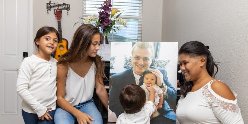 Lani, age six, “talks about her daddy a lot,” says Jen. “Lately, she has been saying that she wants to die so she can be with him because she misses him so much.” Jen says Lani will pick any yellow flower she sees to bring back home and place on the box with his ashes. She knew yellow was her daddy’s favorite color.