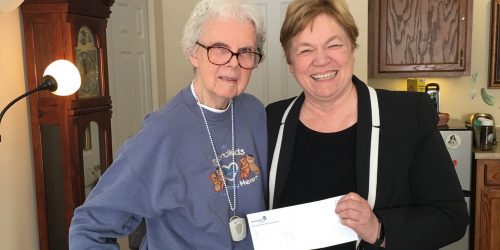 Dot met President Andrea Luxton in 2019 and shared her excitement to help students. Photo courtesy of the family.