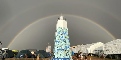 After a storm blew through the camporee on Tuesday, August 6, 2024, a double rainbow appeared over the Lake Union lighthouse entrance, an apt reminder for us to believe in God’s promises. Photo credit: Rebekah Helsius
