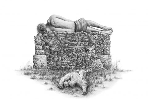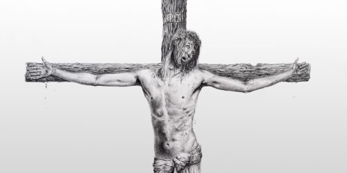 When planning out, and especially when executing my two drawings, it became quite important to me to communicate Christ’s human struggle. I didn’t want to beautify His expression or eliminate grime from His hair or skin. I left the background completely white to force the viewer to contend with Christ’s bare body and the entirely human expression on His face. I also made it a point to not smudge or use any blending tools while drawing Christ. I felt that if I blended tones and pencil marks together, a certain raw and imperfect quality would be lost.