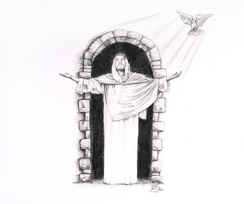 Resurrection – I am relieved that God sent His son to die on the cross so that we may be saved. We now have hope that one day we will be united with our Savior. I tried to capture this resurrection with a calmness on the face of Jesus knowing that the work here on Earth is completed. The dove represents peace. Throughout all the hardships, God was always there with Jesus, He never left his side. Just like that, He is there for us. We only need to allow Him to be there. We live with peace, knowing that Jesus died for us, and the hope that we may be saved.