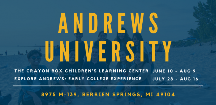 Andrews University Summer Camp and The Crayon Box are offering an educational day camp experience for children entering grades one to seven. The program will be held on the Andrews University campus, where children will be divided into two locations based on their grade. Each day will include team-building activities, worship and a camp council, where children will be encouraged to take ownership over the day’s educational activities.