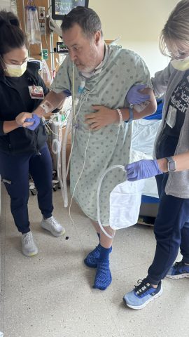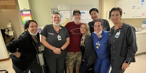 After spending more than three weeks recuperating at the hospital, Baham was discharged to a rehabilitation hospital. During his time at the hospital, Spino and Brittney Mollicone, a UChicago Medicine AdventHealth GlenOaks ultrasound technologist, visited with him and stayed in touch regularly. The UChicago Medicine AdventHealth GlenOaks radiology team is a tightknit group. “It’s like a family,” Baham said. “We’re constantly doing stuff for each other.”